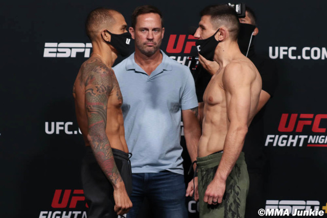 Tim Means lands a headkick within the first few seconds of this fight which seems to anger Dalby, sparking a flurry from him. Means ends up getting a takedown and possibly wins the round due to top control. Round two is a back and forth exchange between the two fighters with each of them having their moments. Dalby rocks Means early in the third and then immediately goes for a clinch instead of keeping distance and trying to continue landing strikes. This allows Means to recover. After lots more exchanges the time expires leaving the outcome to the judges. Tim Means by unanimous decision.