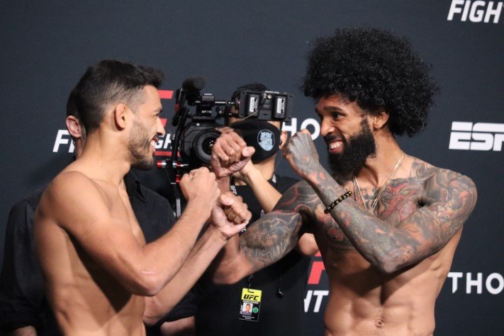 This main event fight was a nail biter. Sandhagen landed the better and heavier strikes all throughout the fight but it was Dillashaw who was the aggressor bringing the constant pressure. Dillashaw continued to force the grappling exchanges and clinches. Sandhagen was the slicker striker pulling Dillashaw into strikes and landing repeated jabs and straight punches on him. Going into the fifth round it felt like the fight was tied and the winner of the final round would take the victory. After a hard fought final round and a very closely contested bout the fight was left to the judges. Dillashaw by split decision.