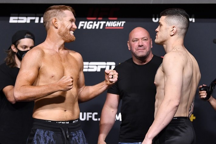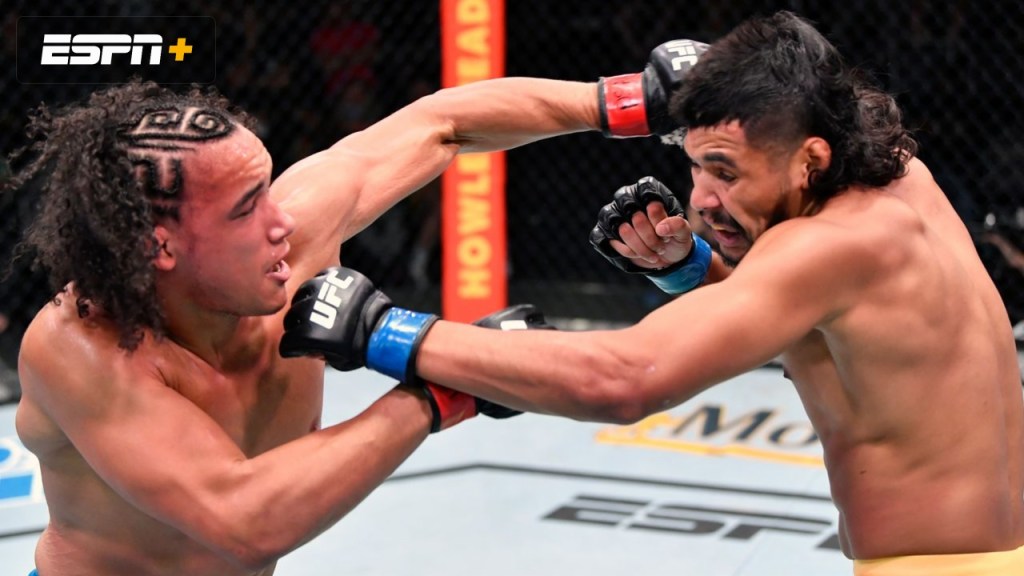 This fight was a tough one for Mana Martinez. His beloved coach tragically and suddenly passed away the week before this fight due to Covid complications. In addition, this was his UFC debut. Martinez had a rough start as Cannetti was lighting him up with devastating kicks. He was absorbing brutal body kicks, horrible leg kicks and even an occasional head kick. Martinez had his moments against the cage occasionally when he would throw flurries but it appeared the first round was clear cut in Cannetti’s favor. Round two was better for Martinez as he picked up the activity and did enough to steal the round in some of the judge’s eyes. Round three was the best round for Martinez as he continued the increased activity but most importantly ended the round with a very important takedown. The fight was close but ultimately, Martinez did just enough to honor his late coach. Martinez by split decision.