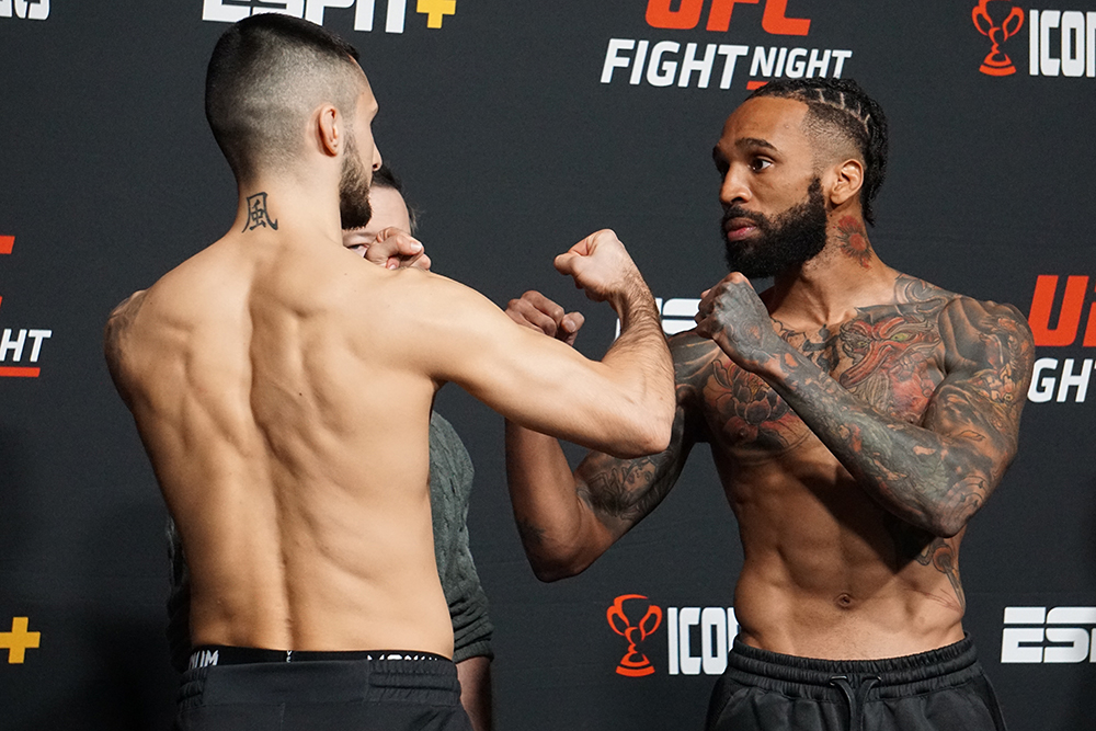 At the start of this fight the most noticeable thing is the very obvious size advantage of Chiasson. She is several inches taller and has a much longer reach. During the striking exchanges however, Pennington is still able to utilize her persistent boxing aggression and is still able to get on the inside and land at times. Chiasson remains the better striker from the outside though and is able to land consistently with long jabs, hooks and push kicks. Eventually the grappling takes place and Chiasson is able to get a takedown where she ends the round in top control. This may have been enough to win her the round. In the beginning of the second, Pennington comes out much more aggressive and is blitzing Chiasson with a good amount of success. Chiasson eventually is able to clinch to slow down the overwhelming aggression of Pennington. The fight eventually hits the ground and this time it is Pennington in top control. It doesn’t take long before she can lock in a choke over a scrambling Chiasson. After only a few seconds, Chiasson is forced to tap out. A nice performance and win for Raquel Pennington. Pennington by second round submission.