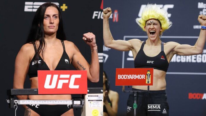 Modafferi comes into this fight after announcing it will be the last of her career. In typical Modafferi fashion, she chooses to take a very tough fight against a rising fighter with a ton of momentum. Surprisingly, the opening round plays out entirely on the feet. Many thought O’Neill would choose to take Modafferi down repeatedly and try to dominate her there as she had done in her prior wins. Although O’Neill lands double the strikes that Modaferri does in the first round, it is O’Neill who is wearing all the damage. O’Neill wins the first round but she finishes the round with a bloody nose and a black eye. In the second round, the fight continues to play out on the feet. As O’Neill continues to find her rhythm and build momentum, she starts yelling out her war cries loudly into the air. The crowd responds and both fighters feed off of the energy. O’Neill yells out again and Modafferi decides something needs to change so she quickly ducks under and gets the first takedown of the fight. A nice change up for Modafferi but the takedown comes too late in the round and is too little too late. In the final round Modafferi comes forward with even more pace knowing this will be the last round of her career. O’Neill continues to land nicely but Modafferi continues to eat them and press forward. She even still mixes in the takedowns and clinching occasionally. In the end, it appears to be a clear cut win for O’Neill but another admirable performance by Modafferi to top off her even more admirable career. O’Neill by unanimous decision.