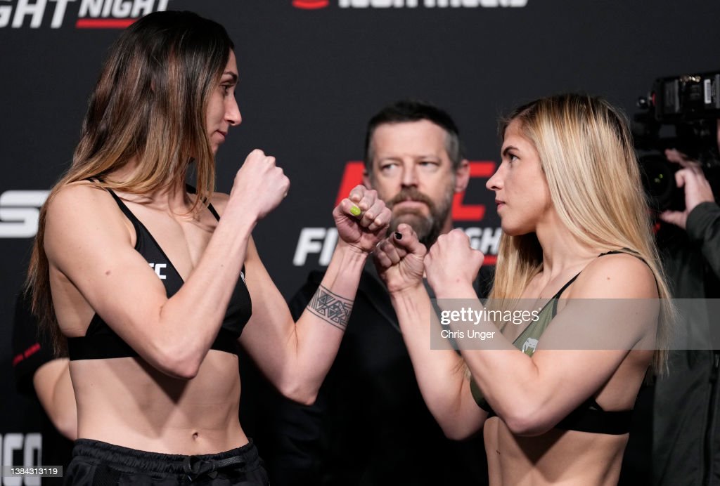 Maverick comes into this fight needing a win after suffering a decision robbery in a fight she clearly won against Maycee Barber then losing fairly to Erin Blanchfield. Mazo, the much taller and longer fighter is most dangerous with her head kicks. Maverick’s easiest path to victory in this fight would be the grappling approach. In the opening round Maverick comes out aggressive as she usually does. She trades a few punches with Mazo and throws a kick or two for good measure. Once she has Mazo sitting down on her strikes Maverick ducks under and quickly gets the smart takedown. Mazo is able to eventually get back to her feet but Maverick quickly takes her back down again. For the most part Maverick spends a majority of the round in top control which helps her to clearly win the first round. In the second round the fighters began trading strikes on the feet again and Maverick, although shorter, is getting the better of the exchanges. She waits just long enough to take Mazo’s mind off the grappling before she quickly ducks under again and is able to land another very convincing takedown. From there she is able to take the back and lock in a tight rear naked choke. Mazo tries to fight it off but it doesn’t take long before Mazo sees there is no escape. She is forced to tap out. A very nice win for Maverick to get back on track. Maverick by second round submission.