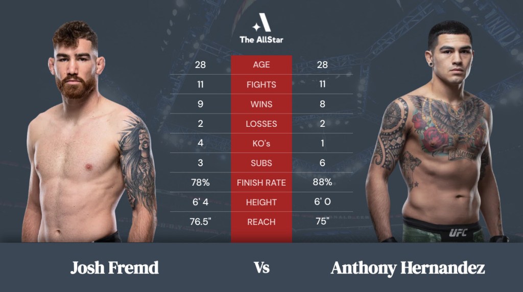 This fight was nonstop action and was the most exciting fight of the night thus far. From the opening bell Hernandez blitzes across the cage and immediately closes the distance. This was a brilliant idea because Fremd was much taller and longer by a very large amount. Hernandez makes Fremd grapple the entire first round and is constantly making him work while threatening submissions and landing strikes. Anytime Fremd is able to escape the grips Hernandez immediately latches back on and never gives him space. In the second round Hernandez continues right back to his relentless grappling pressure. However, in this round Fremd finally just quits trying to disengage in hopes of being able to have a striking fight. He just fully commits to the grappling and starts doing offensive wrestling of his own. In fact, Fremd eventually starts getting the better of the grappling exchanges and finds himself in top control landing hard strikes and now threatening submissions of his own. The crowd is extremely loud at this point after seeing how much Fremd has turned this fight around. Another exciting and close round but this one may have actually gone to Fremd. In the final round though, Hernandez gets right back to his relentless pressure but this round does not go nearly as well for Fremd. Hernandez basically just drowns him with the grappling pressure this time and as the round begins to unfold it just never gets any better for Fremd. As the fight comes to a close it was a very exciting bout but it was clearly won by Hernandez, two rounds to one. Hernandez by unanimous decision.