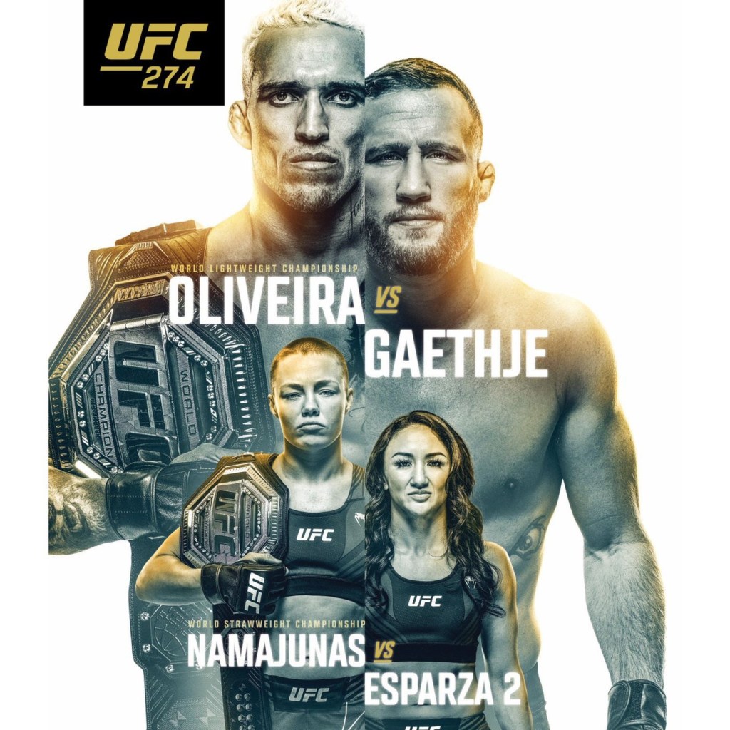 Two belts are on the line, along with a contender matchup and veterans duking it out beforehand, as Shogun Rua and Cowboy Cerrone return to action. In the main event, Charles Oliveira looks to defend his belt for a second time opposite the hard charging Justin Gaethje, while Rose Namajunas looks to defend down at Strawweight in a rematch against Carla Esparza.