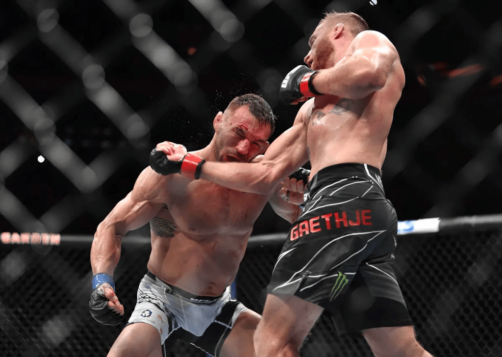 Gaethje has a CHIN on him and is well-known for going into brawls with the intent to stand and trade, as his moniker “The Highlight” suggests. Gaethje brings a multitude of weapons into the cage, with ferocious leg kicks from all angles as well as skilled boxing, particularly in his hooks and uppercuts. He has demonstrated his one-shot knockout power against James Vick, Edson Barboza, and Cowboy Cerrone with first round KOs in three straight bouts, which led him to his interim title win over Tony Ferguson with yet another (technical) knockout.