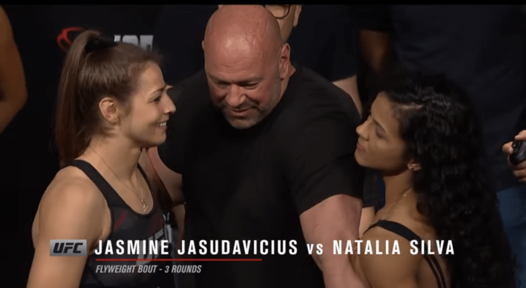 In the opening round Silva is looking phenomenal. Her striking is so crispy, precise and fast. She lights Jasudavicius up with fast punches and even faster kicks. The speed at which she can get her kicks up to the head of Jasudavicius is extremely impressive. Silva also lands lightning fast body kicks. Eventually Jasudavicius has had enough and finally decides to lunge in for the body clinch to try and implement her wrestling. Silva is able to fight off the takedowns though and eventually escapes the grasp of Jasudavicius. From there Silva gets right back to work with her superior striking. Jasudavicius tries another takedown attempt towards the end of the round and it is once again fought off by Silva. A clear winning round for Silva. In the second round Jasudavicius clinches early this time and has her takedown attempts stuffed yet again. In fact, Silva ends up using a judo toss and violently slams Jasudavicius instead. As the round progresses it is just more and more displays of Silva’s superior skills. She dominates Jasudavicius in every aspect. Going into the final round Silva is very clearly up two round to zero. In the third round Jasudavicius continues to walk forward carelessly and get lit up. This entire fight she is basically just target practice for Silva. It is yet another clear cut round for Silva. This fight was a showcase of absolutely dominance and pure skill superiority in the favor of Silva. What a performance. Silva by unanimous decision.