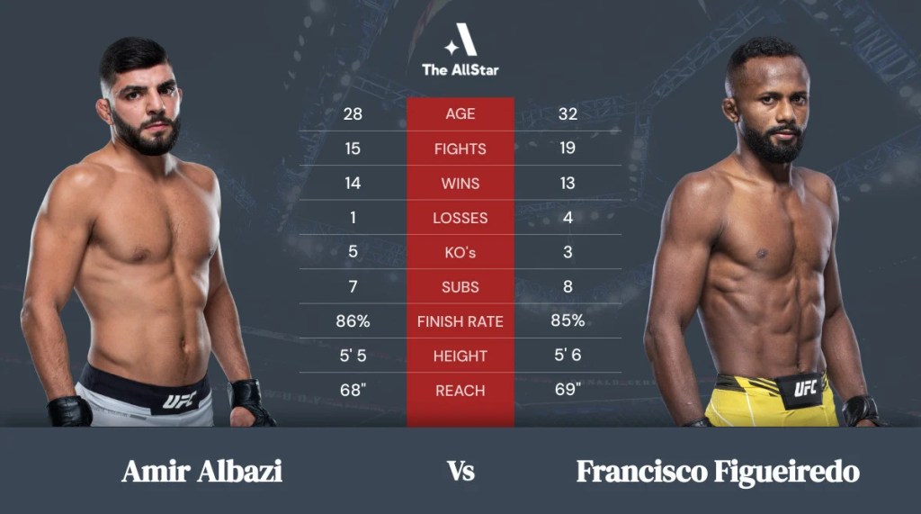 This fight was yet another short lived affair. The fighters start off somewhat measured and respectful of each other. Eventually Albazi starts to clinch and is demonstrating his clear power advantage in the grappling. Figueiredo lands some beautiful kicks straight up the middle to the body of Albazi. Eventually the two fighters are clinching along the fence and Albazi grabs a body lock which he then uses to force Figueiredo to the ground. From there he lands some nice ground strikes and is eventually able to work to the back of Figueiredo. It doesn’t take long before Albazi is eventually threatening submissions. Eventually he is able to get under the chin of Figueiredo and has a rear naked choke which he is squeezing tightly. Figueiredo tries to hang on but the pressure is just too tight and he is left no choice but to tap out. Another very impressive win for Albazi to keep him surging up through the division. Albazi by first round submission.