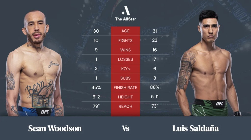 The first round of this fight was an incredibly wild affair. The two fighters are trading on the feet and it is competitive for the first couple minutes. Then out of nowhere Saldana lands a beautiful left hook that drops Woodson instantly. He looks completely out of it and all it would have taken is Saldana to run over and land another shot that would have ended the fight immediately. Instead Saldana just stays on the other side of the cage and watches him get up slowly. Woodson is still very out of it so when he walks over to engage again he is now dropped with a simple jab. Saldana now sprints over to follow up but he makes the terrible mistake of blasting a knee to the head of Woodson while he’s still clearly down but trying to get up. The fight is quickly paused and Saldana is running around the cage thinking he won. He hops on top of the cage and is raising his arms to the crowd. He eventually finds out that the fight is not over and even worse, he is now being deducted a point. He is lucky the fight is not just altogether called off but Woodson is a soldier and chooses to continue. The round eventually comes to an end and it could very well have been a 9-9 despite all the damage and dominance that Saldana displayed. In the second round the fighters continue to exchange on the feet and for the most part the round is close. In the final minutes the fight hits the ground and Woodson gets Saldana in a buggy choke. The choke is very tight and Saldana looks very concerned but he is somehow able to survive to the end of the round. A very interesting fight thus far and despite all the damage that Woodson sustained, he could be up by a round now after the buggy choke attempt in the second. In the final round the two fighters are fatigued but continue to press on. Each fighter has their subtle moments but neither ever do much to emphatically steal the round. Woodson gets in top control on the ground briefly and with the round so close something as simple as that could have been enough to sway the judges in his favor. Going to the judges the audience and commentators have no clue what to expect. The fight was entertaining but very weird. However, in the end, the judges declare this fight a split draw.