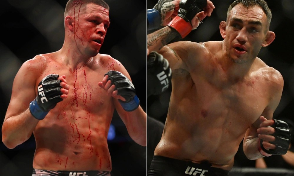 The opening round has the crowd already on their feet. Ferguson comes out and quickly looks to be the faster fighter. As the round progresses though Nate shows that he is slick and sneaky. Ferguson throws head kicks and leg kicks with occasional jabs or spinning elbows. But Diaz switches speeds and breaks up the timing to constantly throw off Ferguson. Diaz lands some good off speed punches that surprise Ferguson. Towards the end of the round the crowd is chanting “Diaz”. It is a fun opening round and could have gone to either fighter. In the second round Diaz continues to land sneaky punches and eventually Ferguson now has blood that is bothering his right eye. Diaz walks forward and throws continuous one-two punches that catch Ferguson off guard. It is another close round but this one seems to be more clear cut in the favor of Diaz. In the third round Ferguson starts really butchering the legs of Diaz. They are clearly starting to bother Diaz and they buckle a time or two. There is a clear swollen mass on the shin of Diaz’s leg. Diaz does some funny antics that get the crowd screaming and then he engages once again. Now both fighters legs are battered. Diaz has swollen shins but Ferguson’s shin is pouring blood heavily. Nate lands more sneaky punching combinations but this round may have been edged by Ferguson. It will be interesting to see. In the fourth round the madness continues and the two fighters continue to trade with their unorthodox styles. Eventually a grappling sequence ensues and Diaz locks up the neck of Ferguson. Normally Ferguson is good at escaping submissions but Diaz has his arm trapped and unable to defend. The choke is tight and before we know it we see Ferguson tapping out and the crowd erupting. Diaz finds the happy ending after all. Diaz by round four submission.