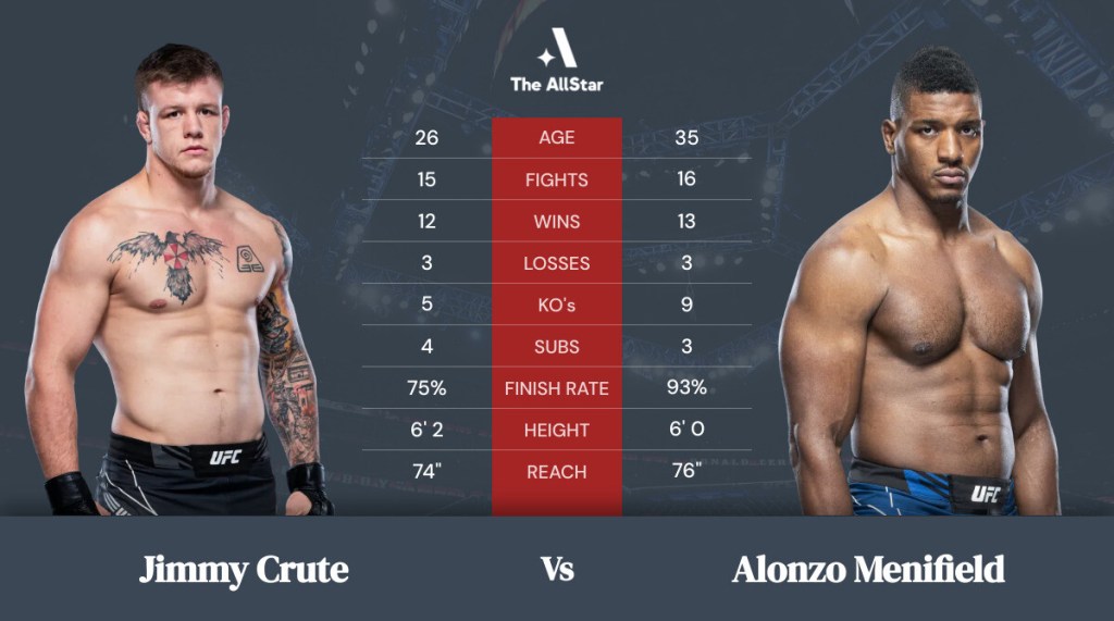 The opening half of the first round is all Crute. He lands an early takedown and is all over Menifield with grappling pressure. Each time Menifield stands back up he is once again taken down shortly thereafter. This is quickly draining the power bar of Alonzo Menifield. However, late in the round Menifield starts landing left hooks. He has Crute wobbled and begins to pour on the violence. Crute is in all kinds of trouble and Menifield has now completely turned this fight around. Crute survives the round but he took a lot of damage late in the round. In the second round Menifield continues to pour it on. He has Crute wobbled and extremely close to being done on several occasions. The referee was waiting for one more shot to call off the fight. This kept happening but somehow Crute was able to barely survive. Then later in the round Crute gets a takedown and starts to come back. He finds his own momentum now and the crowd erupts. What a round. In the final round it’s anybody’s fight. Crute tries to grapple early but both fighters are exhausted now. He eventually lands the takedown, and this is the beginning of the end for Menifield. He is just too exhausted to get back up. Crute stays on top for the remainder of the round and peppers shots while controlling. This may have been enough to squeak out the victory. It is a wildly exciting fight with so many momentum swings but in the end, the fight ends up being even. This fight is a majority draw.