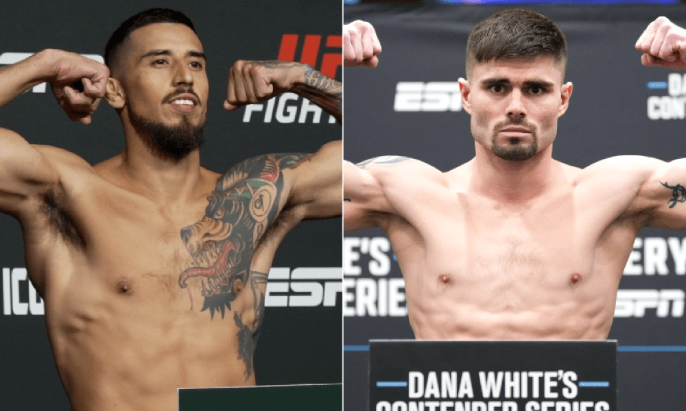 The opening round of this bout is competitive at first. The striking exchanges are fairly even so Leavitt waits for his opportunity and then pursues the grappling. Martinez defends nicely though and the takedown attempt is denied. Later in the round Leavitt backs Martinez up against the fence again and this time he throws some knees right up the middle. He lands two of them flush and Martinez drops. Once he hits the ground he shells up in a ball while Leavitt rains down follow up punches. This is enough for the referee to step in to stop the fight. Leavitt by first round TKO.