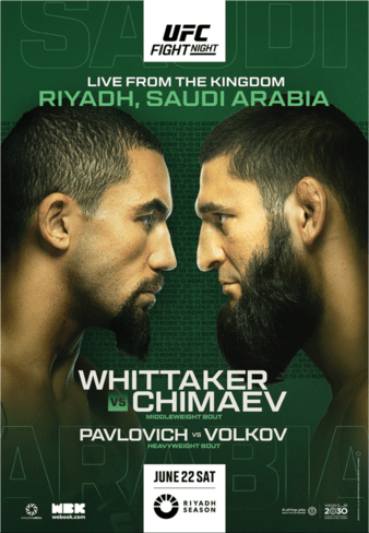 In the main event, former Middleweight champion Robert Whittaker looks to stop the rise of surging prospect Ikram Aliskerov, while former training partners Sergei Pavlovich and Alexander Volkov lock horns in the Heavyweight co-main.